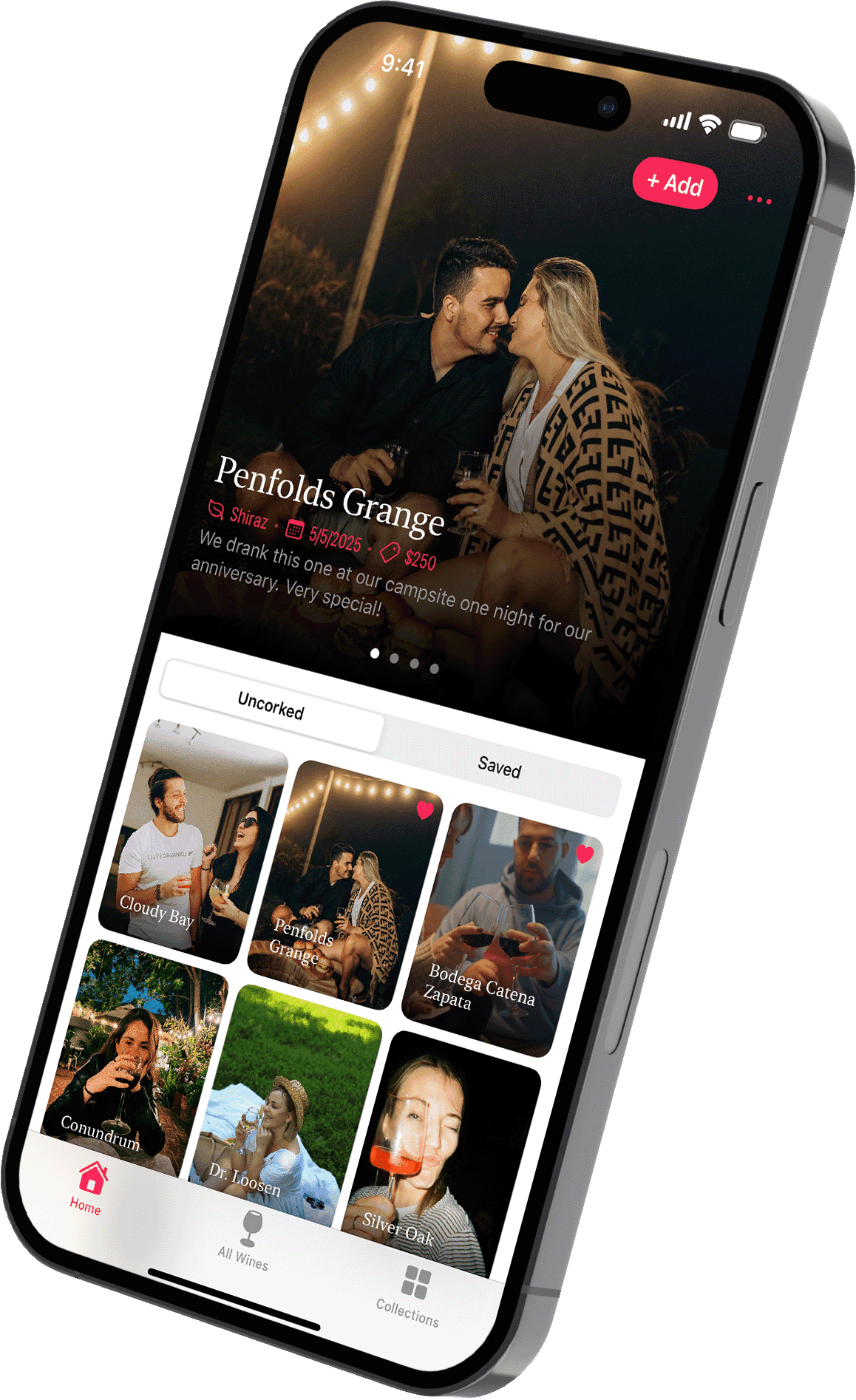 Ditch the spreadsheet. Bold imagery brings your wine memories to life, one sip at a time.